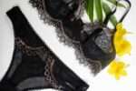 • Lace  with golden inserts  and soft mesh